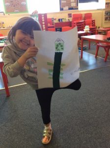 ‘This week the children have been exploring the letter J. They have explored the jungle, Jack and the Beanstalk, made jelly and jam treats and explored artists including Jackson Pollock. The children really enjoyed a mini sports day on Wednesday which included jogging, jumping jacks, juggling, javelin, long jump and high jump. The younger children made their own jellyfish and crowns with beautiful jewels on them. They then made jingle sticks in the forest school. It has been a jolly and jovial week in school!’