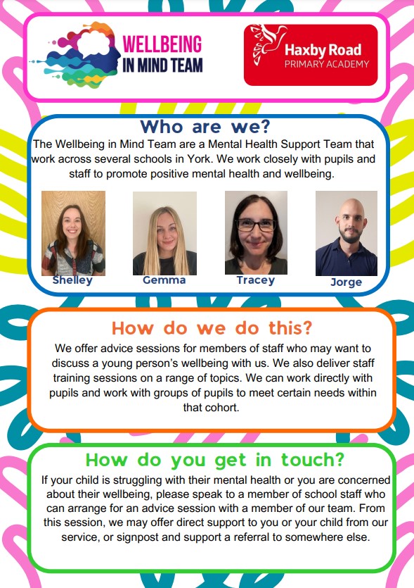 Mental Health & Well being is at the forefront of our school’s vision and we are committed to supporting the emotional health and wellbeing of our school community. We have a Mental Health Lead who works alongside the WEB team (Well Being & Behaviour) that consists of a Behaviour Lead and our school SENCo